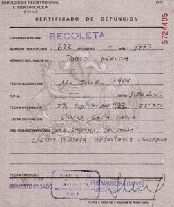 La falsedad del Certificado de Defunción emitido en la clínica Santa María el 23 de septiembre de 1973, que señala caquexia cancerosa –algo improbable en un hombre que pesaba unos 90 kilos-, señala con dedo acusador a los militares que bañaron de sangre a Chile en la época.
