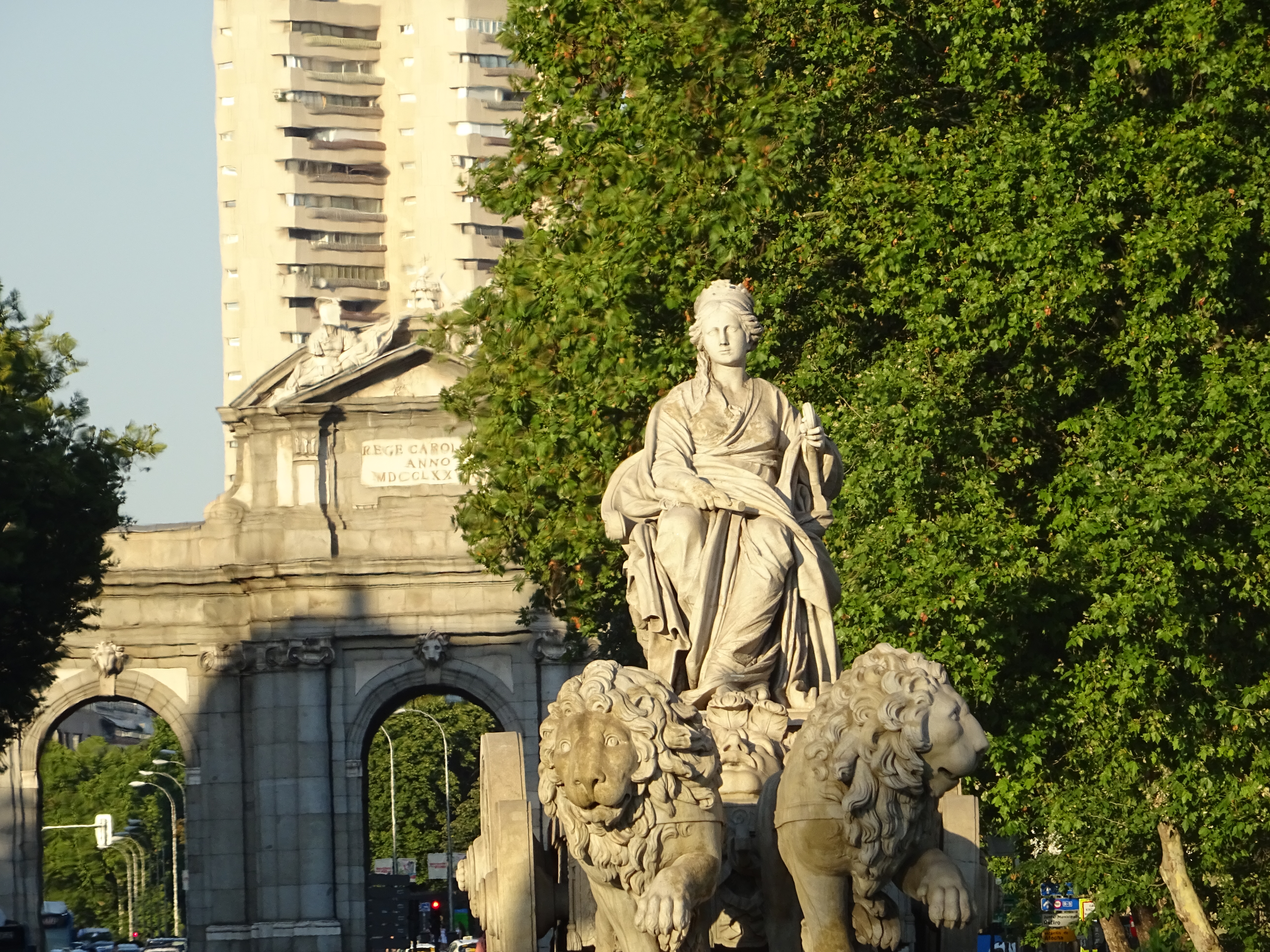 La fuente de Madrid representa a la diosa madre Cibeles, identificada en el panteón griego con Rea, madre de los dioses olímpicos y símbolo de la tierra y la fecundidad.
