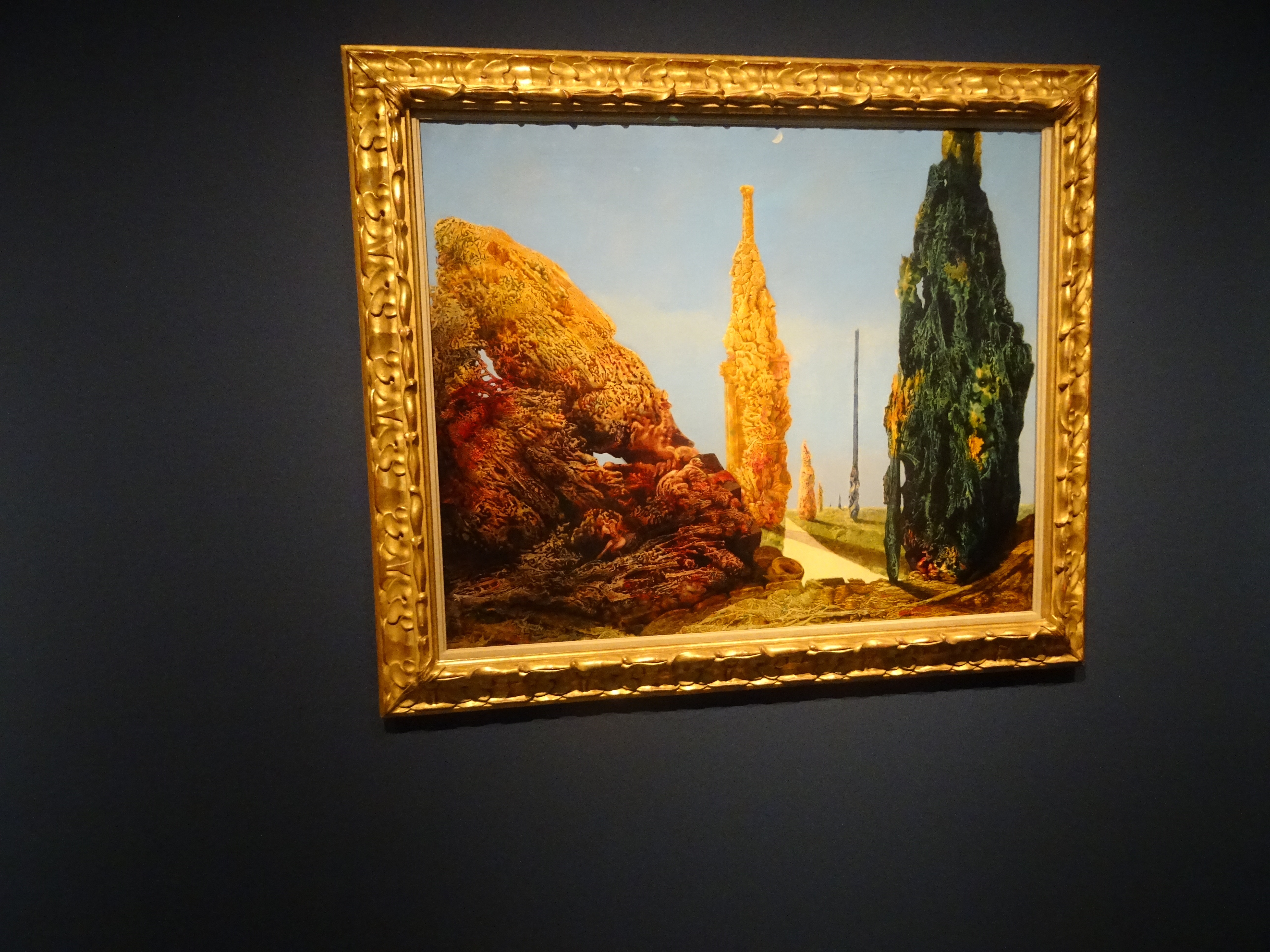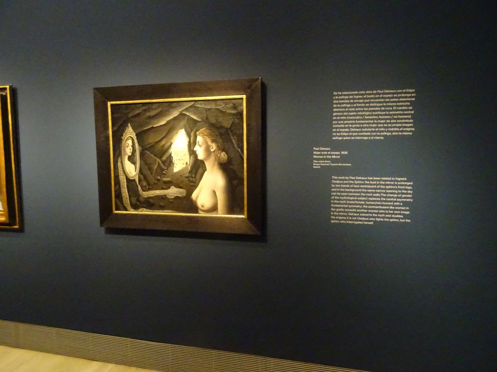 El título de la muestra ya de por sí lleva subyacente sus primeros mensajes cifrados. Estoy casi seguro de haber visto en muchas ocasiones “Arbol solitario y árboles conyugales”, del pintor germano-francés Max Ernst o “Mujer ante el espejo”, del belga Paul Delvaux.